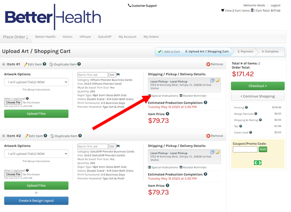 - Once Satisfied Click The Checkout Button or Continue Shopping